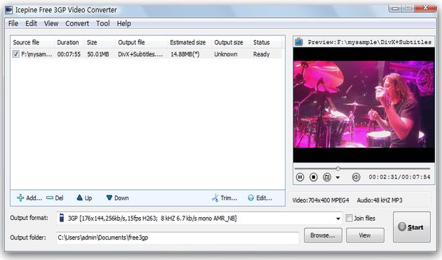 Icepine Free 3GP Video Converter soporta la conversión por lotes, realiza el proceso de conversión de forma muy rápida y nos permite cortar y unir fragmentos de vídeo.