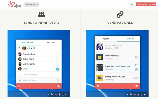 Otra nueva alternativa, para realizar la tarea de enviar todo tipo de archivos, es Infinit. Se trata de un software gratuito que trabaja con la tecnología P2P y se ocupa de cifrar los ficheros que enviamos para su protección, está disponible para los sistemas operativos Windows y Mac OS X.